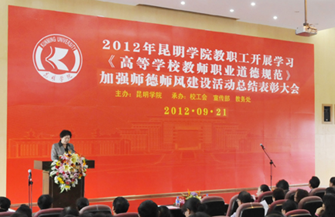李副书记就德赢官网2012年开展学习贯彻《高等学校教师职业道德规范》加强“师德师风”建设活动作总结讲话。她说,为了进一步贯彻《高等学校教师职业道德规范》,加强“师德师风”建设,倡导全校教职工立足本职岗位,兢兢业业工作,忠诚党的教育事业,争当教书育人模范。学校自5月开展学习《高等学校教师职业道德规范》加强“师德师风”建设活动以来,各单位认识到位、精心组织,学习形式多样,成效显著,涌现出了一大批先进集体、先进个人。有的教学院系将学习活动与“迎评促建”有机结合,把“规范”作为“师德”考核的基本要求,把教学、科研、日常管理等工作业绩作为全面评价师德的依据,把师德表现又作为教师绩效评价、聘任和评优奖励的首要标准,建立健全师德考核体系和档案;有的院系将“师德师风”列为年终履职考核的内容,将教师担任班主任、学生学习辅导等要求作为申报职称的必要条件,实行一票否决;加强教师学术诚信,严肃学术纪律,规范学术行为等践行《高等学校教师职业道德规范》具体措施;有的将学习活动与学生的管理服务工作相结合,组织动员教职工捐助因病、因突发事件导致生活困难学生,对贫困学生进行家访,建立党员助困基金,认真践行敬业爱生,真心关爱学生,严格要求学生,公正对待学生,做学生良师益友。