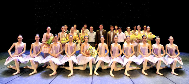 辽宁芭蕾舞团此次来昆的70余位演员为德赢官网师生呈现了一场品味高雅、美轮美奂的芭蕾盛宴。演出在唯美浪漫的经典芭蕾舞剧《仙女》中盛妆启幕,演员们用精湛的舞技精彩演绎了中外芭蕾舞的经典与现代之作。现代男子群舞《男人》阳刚雄武、活力四射;古典芭蕾舞剧《海盗》生动唯美、激情奔放;现代女子群舞《茉莉花》优雅曼妙、赏心悦目;精选节目《芭蕾集锦》节奏明快、酣畅淋漓;情景芭蕾《江山美人》如歌如泣、激昂悲壮;现代二人舞《无欲无虑》动感协调、引人入胜;世界经典舞剧《天鹅湖》双人舞揭示了对生命,对爱情的无限憧憬;而中国芭蕾舞剧《二泉映月》中的经典桥段《梦中追月》成功的将听觉向视觉转化,实现了一次文化层面上的中西合璧,美不胜收、感人肺腑。整台演出精彩纷呈、高潮迭起,赢得了全场师生经久不息的热烈掌声。最后,演出在辽宁芭蕾舞团全体演员带来的原创作品《芭蕾风采》中徐徐落下帷幕。演出结束后,陈世波书记还亲切地与演员们合影留念。