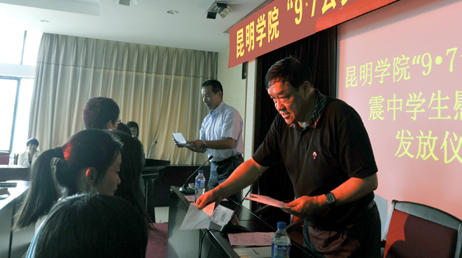 9月27日下午,学校在办公楼502会议室举行“德赢VWIN官方网站9.7地震震中学生慰问金发放仪式”。党委副书记孙勇出席,副校长李翔主持仪式。在发放仪式上,孙副书记代表学校领导向灾区学生表示慰问,并鼓励受灾学生不能因灾消沉,在自然灾害面前,要坚强,要树立重建家园,再造美好生活的信心。学校为来自震中灾区的177名学生发放了慰问金,以帮助和鼓励学生安心学习和生活。