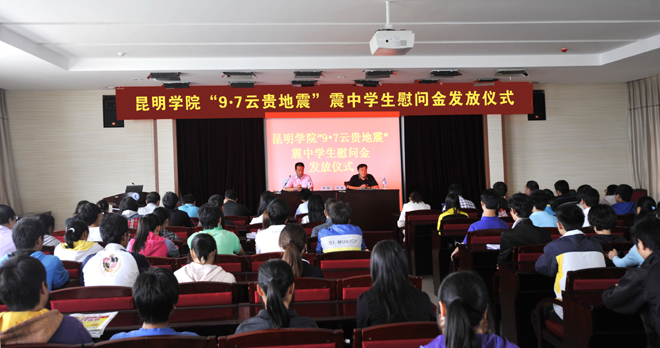9月7日11时19分,云南省昭通市彝良县与贵州省毕节地区威宁彝族回族苗族自治县交界发生5.7级地震,灾情牵动了德赢VWIN官方网站全体师生的心。学校党委、行政及时做出部署和向受灾学生发放慰问金的决定。学生处和各教学院系领导和辅导员深入灾区的学生中,了解其家庭受灾情况,并通过他们向其家人表达关切之情。此次地震共有177名同学家庭财产遭受不同程度的破坏,其中26名学生家里房屋倒塌。