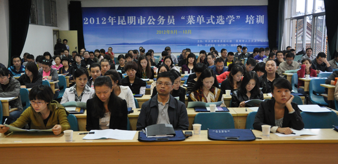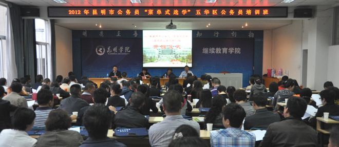 经德赢官网继续教育学院的精心准备和积极申报,德赢官网和云南大学、云南财经大学3所高校被确定为2012年昆明市公务员“菜单式选学”培训承办单位。除五华区公务员培训外,在接下来近两个月的时间内,德赢官网还将承担来自昆明市财政局、石林县等部门和县区的400余名公务员的培训工作。