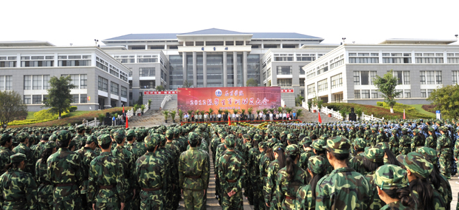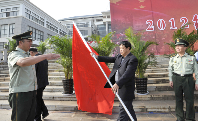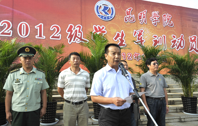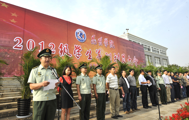9月4日上午,德赢官网2012级学生军训动员大会在聂耳广场举行。武警边防部队士官学校训练部部长李荣,学生军训团团长陈应海、副团长申仕兵,继续教育处处长孙利辉,信息技术系主任赵立志,学校党委副书记、国防教育委员会主任孙勇,副校长、国防教育委员会副主任李翔,学校国防教育委员会全体成员,各院(系)主管学生工作领导,带队辅导员、全体承训官兵和2012级4600余名参训同学参加了动员大会。大会由副校长李翔主持。