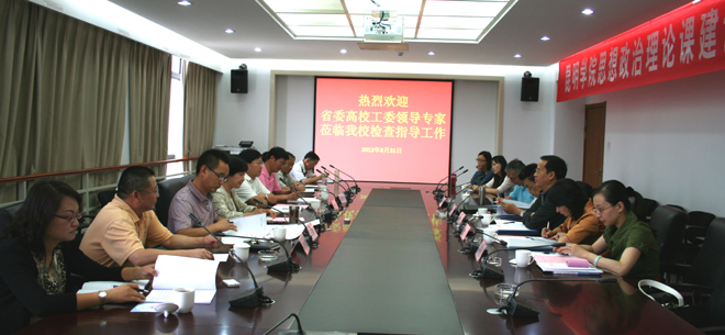 桂正华部长就我省思想政治理论课建设的督导评估工作的背景、地位、目的意义、评估指标及工作程序、方法作了说明,就德赢VWIN官方网站今年向省委高校工委、省教育厅申请思想政治理论课本科评估——过程督导要求作了说明。思政部主任王建华向检查组一行汇报了德赢官网思政课迎评促建自查报告和准备工作情况。李副书记补充汇报了德赢官网自2008年以来思想政治理论课建设在党委的高度重视下,在全体教师的辛苦努力下取得的成绩。表现在六个方面有新的突破:一是思政课建设经费有新突破;二是教师队伍中教授副教授博士比例有新的突破;三是科研项目、成果新的突破;四是思政课的实训基地有新的突破;五是教学创新和教学规范有新的突破;六是大学生形势政策教育内容有新的突破,把廉洁文化教育纳入思政课教育。徐华副部长及两位专家充分肯定德赢官网思想政治理论课建设的成绩,针对检查评估准备工作中存在的问题和不足提出了宝贵的意见,就如何进一步搞好思想政治理论课教育教学评估工作做了全面具体的分析指导,并提出了整改意见。