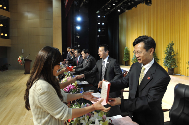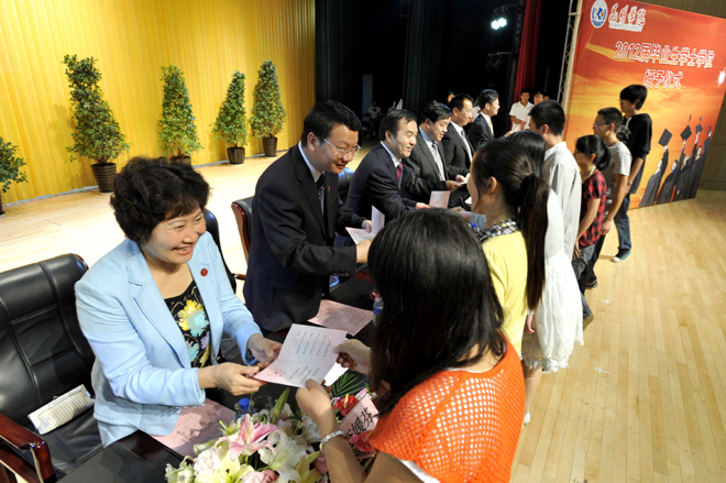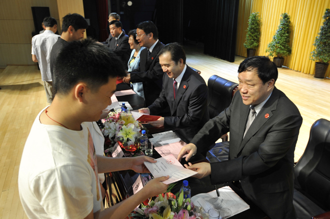 首先,李翔副校长宣读《德赢VWIN官方网站关于对2011~2012学年省级三好学生、优秀学生干部、先进班集体进行表彰的决定》和《德赢VWIN官方网站关于对2012届省级优秀毕业生、校级优秀毕业生进行表彰的决定》。76名省级三好学生、22名省级优秀学生干部、9个省级先进班集体;196名省级优秀毕业生,593名校级优秀毕业生受到了表彰和奖励。与会校领导分别为获奖个人和集体颁发荣誉证书。