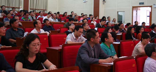 在讲座中,曹教授指出管理有三个层次,初级层次是以物为本,中级层次是以人为本,高级层次是以文化为本。实施科学管理就是要用文化管人,在这个过程中,领导要做的三件事就是出主意、用干部、做案例。领导要善于用共同愿景引导人,凭高尚人格感染人,以竞争机制激励人,靠科学管理规范人。在管理工作中,领导要善于研究变化,坚持以才服人、以情感人、以德昭人、以廉勉人。他强调:只有思想是浪漫的,缺少思想的实践是蛮干的,思想加实践才是灿烂的。曹教授的讲座语言诙谐幽默,鲜明生动,有很强的针对性,让与会人员很受触动和启发。