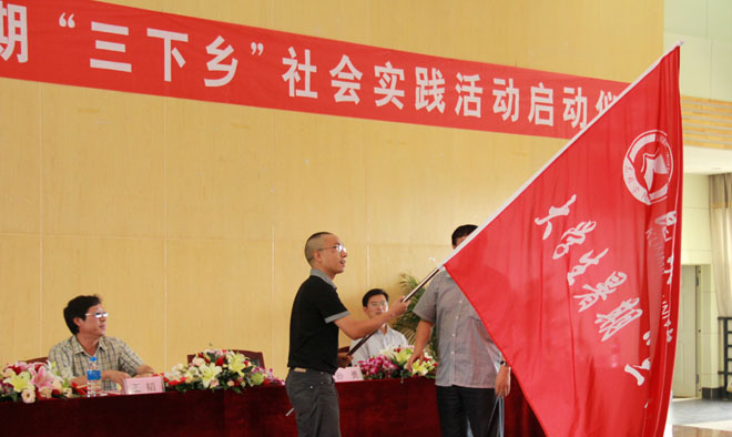 6月28日下午,德赢官网2012年暑期大学生“三下乡”社会实践活动启动仪式在惟行楼1501会议室举行。学校党委副书记孙勇、党委宣传部副部长董学荣、教务处副处长王韬、学生处副处长侯青妮以及教师教育学院、人文学院、音乐学院、信息技术学院、城乡建设与工程管理学院、自动控制与机械工程学院、农学院、医学院、旅游学院师生代表共200余人参加了仪式。仪式由团委书记何昊宸主持。