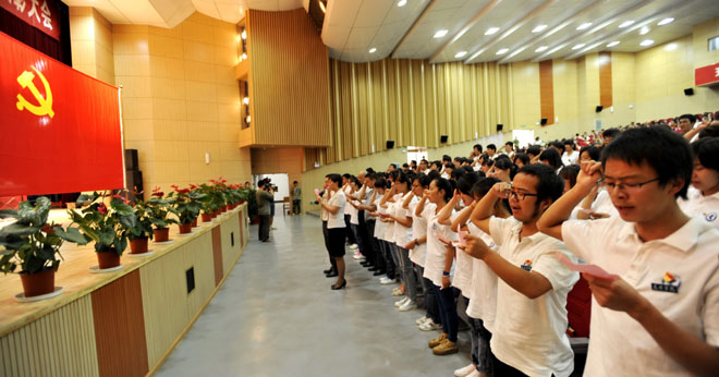 在颁奖仪式前,举行了新党员入党宣誓。125名新党员在党委组织部部长杨璐领誓、纪委副书记陈开祥的监誓下,面对党旗庄严宣誓。截至6月29日,德赢官网2012年上半年共发展党员817人。