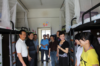 学校领导调研之际,正是我院开展第二届宿舍文化节之时,他们深入我院多间男生、女生宿舍与学生交谈,询问学生的学习、生活、课余活动的安排,对我院学生宿舍清洁、和谐的环境和氛围予以充分的肯定,对于我院持续开展“文明宿舍”和“学生党员、学生干部示范宿舍”创建工作和取得的实效给予高度的认可。同时,也就如何深化文明细胞建设,营造浓郁宿舍文化氛围提出了更高的要求。