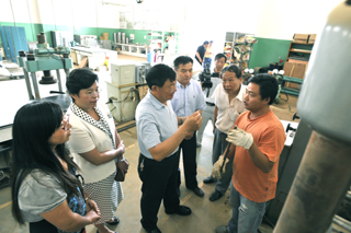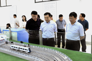 在参观德赢官网建筑材料、轨道交通、流体力学、烹饪等实验室中,杨应楠副主任一行边参观边仔细听取梁书记、陈校长就德赢官网特色学科专业建设情况介绍。在参观中,省市领导每到一个实验室,都要向实验室教师了解实验室的建设情况,并饶有兴致地听取对设备功能及流程的介绍。