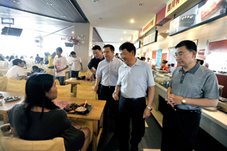杨副主任一行在校领导的陪同下,还深入学校食堂了解师生用餐情况。