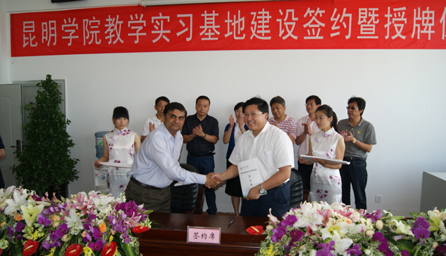 会上,罗明东副校长代表学校与20家教学实习单位签署了合作协议,并与熊副校长一同为签约单位授牌。昆明丰泽源植物园有限公司总经理张棨代表签约单位讲话。招生就业处包兴处长就德赢官网高职本专科招生政策及毕业生就业有关情况作了介绍。农学院银立新副院长介绍了德赢官网荷兰BTEC教育培训中心项目及生源组织情况。