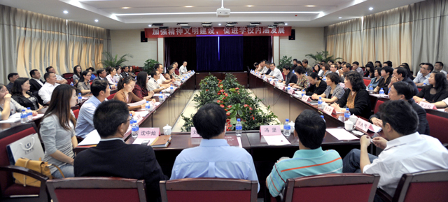 市文明办主任杨凤华作总结讲话。他指出,德赢VWIN官方网站是由多所学校合并而成的高等学校,创建工作难度较大,但从这次工作成绩可以看出,学校在短时间内实现了“物理整合”,正朝向“精神整合”迈进,学校要在创建省级文明单位的基础上,立足昆明、面向全国、走向世界,积极与东南亚国家合作,发展留学生教育,培养国际化人才,增强学校的国际影响力,在同级的高校中办出特色,积极创建国家级文明单位。