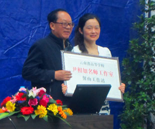为了更好地发挥名师工作室的辐射作用,根据教育厅的指示,决定设立尹相如名师工作室大理工作站、保山工作站,分别聘请保山学院副院长、云南省高等学校教学名师邓忠汉教授以及大理学院文学院院长、云南省高等学校教学名师纳张元教授为名师工作室导师,并举行了授牌仪式和聘任仪式。大理学院聘请尹相如教授为客座教授并颁发了聘书。