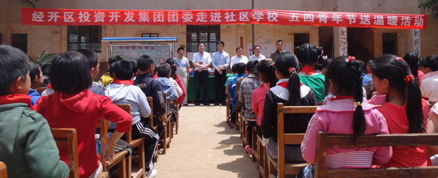 为进一步贯彻落实省第九次党代会精神,深入开展“四群教育”,积极响应省委组织部、团省委、省高校工委关于组织共产党员、共青团员进社区开展志愿为民服务活动的号召,4月27日下午,校团委联合经开区投资开发(集团)有限公司团委到经开区海子中心学校清水分校,开展了“走进社区学校五四青年节送温暖”活动。校团委书记何昊宸、各院系团总支书记代表及德赢官网青年志愿者参加了本次活动。