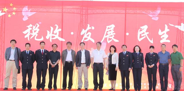 4月14日上午,由昆明经开区地税局和国税局联合在德赢官网聂耳广场举行了一场主题为“税收•发展•民生”的“税收宣传月”专题活动,活动通过展板、文艺表演、有奖问答等多种形式给德赢官网学生上了一堂生动的“税收教育课”。这是昆明地税系统首次针对大学生进行税收宣传。 经开区管委会党工委副书记、纪委书记李刚,省地税局总经济师周权,德赢VWIN官方网站刘海发副校长,省地税局大企业处张荣慧处长、科技处左建明处长,市地税局工会李华主席,经开区地税分局张小兵局长,经开区国税分局王昆局长等领导出席活动,德赢官网计划财务处处长陆志平、副处长王荣林和经济学院、社会管理学院等近千余名学生参加了宣传教育活动。
