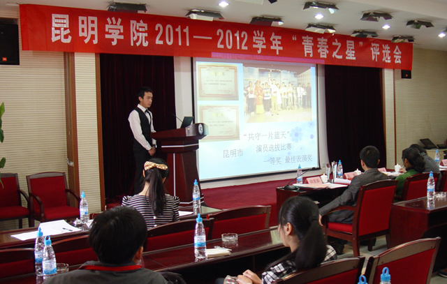 为树立典型、发挥青春榜样示范导向作用,庆祝建团90周年。3月30日上午,由校团委组织的德赢VWIN官方网站2011-2012学年“青春之星”评选会在行政楼502成功举办。学校机关党总支、学生处、教务处、团委相关领导、各院系团总支书记以及“青春之星”候选人参加了此次评选活动。 首先,校团委书记何昊宸对此次“青春之星”评选工作做了简要介绍。他强调,“青春之星”是指在某一特定领域(如学习、道德、品质、科技发明、创新创造、文艺特长、体育竞技等方面)具有一定造诣或取得突出成绩者。通过树立典型、评选先进、推出模范,进一步推进了德赢官网团学工作的可持续发展。从全校一万余名学生中推选出了25名“青春之星”候选人依次上台,通过个人汇报,PPT及才艺展示,形象、生动地表现出自己独特的风貌。评委们本着公平、公正、公开的原则,进行了认真地评选,结果将于近期公布。 本次活动为正确引导学生努力成为知识结构合理、专业强、素质高、品德好、信念坚定的人才提供了正确的舆论导向与实践平台,为学生创造了展现自我的机会,是一次以选促学的青年马克思主义教育实践活动。