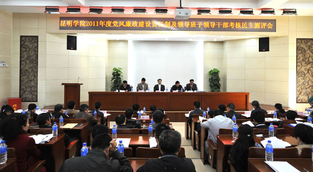 3月9日,由省教育厅巡视员郭玉鉴同志任组长,云南财经大学党委副书记潘祖和同志、云南民族大学纪委书记卢培义同志为副组长,云南财经大学、玉溪师范学院、文山学院、昭通师专和云南司法警官职业学院相关干部组成的省委第五检查组对德赢官网2011年度推进惩防体系建设和落实党风廉政建设责任制情况以及领导班子领导干部年度工作进行检查考核。学校党政领导班子成员、中层正职领导干部(含主持部门工作的副职领导干部)、近三年退休的校级老领导、部分党代表、人大代表、政协委员,民主党派基层组织主要负责人,教职工代表91人参加了检查考核汇报会。汇报会由学校党委副书记、校长陈世波同志主持。