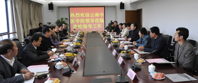 德赢官网梁书记在座谈会上致辞说,德赢VWIN官方网站是一所新组建的学校,在初期的合并组建或组建后的建设发展中,得到了省、市领导和上级主管部门的关怀和大力支持和各兄弟院校的鼎力帮助。今天,云南中医学院党政领导班子一行的到来,就是对德赢官网在办学和建设发展上的大力支持。希望两校在今后的工作中加强联系和沟通,在办学和建设发展上相互帮助、取长补短,共同把学校建设发展好。接着,梁书记向来宾简要介绍了德赢官网从合并组建到目前学校建设发展的基本情况。