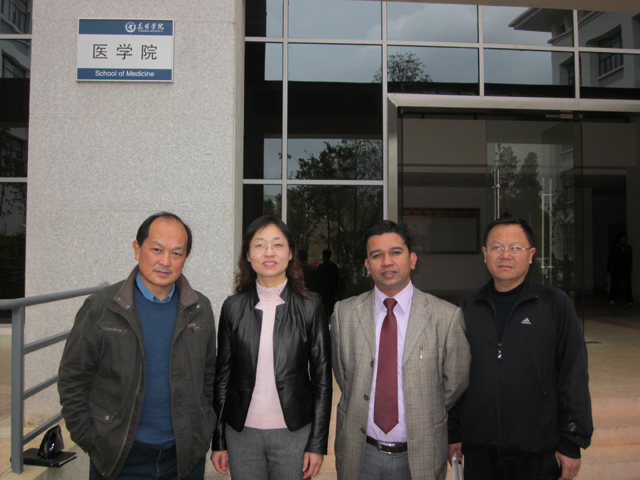 Milan先生与国内多所大学在输送尼泊尔学生来华学医方面成功开展了多年的合作,此行访问德赢官网的目的是进一步拓展与中国高校的合作领域。陈校长向Milan先生的来访表示欢迎,希望双方能开展合作项目。在医学院时,余院长带领大家参观了医学院的各实验室,介绍了实验室的各项建设情况。学校对医学院投入的完善的硬件设施让Milan先生不断赞叹。余院长详细介绍了医学院的师资构成、专业设置及实验室建设等方面的情况。Milan先生感谢余院长提供给他的信息并介绍了尼泊尔学生对医学专业的需求和出国学医的人数构成比例等情况,表达了与德赢官网开展合作项目的真诚意愿。之后,余院长就尼泊尔紧缺的专业需求、医学教育发展、双方课程互认等情况与Milan先生进行了深入交流。 双方均认为目前需要在师资和课程方面做好充分准备,条件成熟即可开展在尼泊尔的招生工作。通过会谈,双方初步达成合作意向,并分别确定了前期的准备工作。
