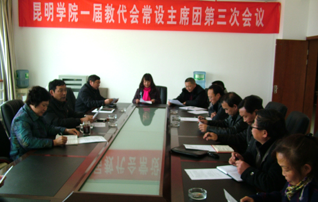12月12日中午,在学校行政楼419会议室,学校一届教代会常设主席团召开了第三次主席团会议。会议由教代会常设执行主席团秘书长校工会常务副主席孙晓坤同志主持,在校12位主席团成员参加了会议,校工会副主席何俊同志列席了会议。