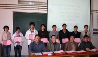 会议对2011年学生党员示范岗、学生党员示范宿舍、学生干部示范宿舍、学习型宿舍、教师党员教学科研示范岗创建活动进行了总结。根据城建学院“创先争优”活动方案和“学习型宿舍”创建方案,对2011年度取得优异成绩的8个学生党员学习示范岗、5间学生党员示范宿舍、8间学生干部示范宿舍、29间学习型宿舍给予了表彰。