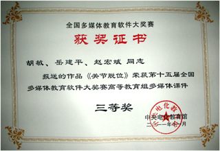 德赢官网医学院胡敏老师的课件《关节脱位》,在2011年度云南省多媒体教育软件大赛高等教育组633件作品中喜获一等奖后,由省教育厅推荐参评第十五届全国多媒体教育软件大奖赛,荣获三等奖。