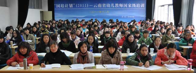 12月2日上午,经过精心的筹备和组织,德赢官网申报的“幼儿教师国家级培训计划”云南省农村幼儿园园长、骨干教师短期集中培训班开班典礼在昆师路校区举行。本期培训共有幼儿园园长、骨干教师各100名,参加为期15天的培训学习。