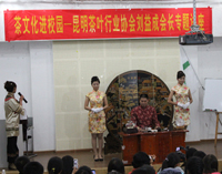 讲座以精彩的茶艺表演开始,刘会长以娴熟的技法为在场的220余名师生表演了沏泡普洱茶。接着,他从“茶”字的来历引出了有关茶的社会功能,同时向同学们阐述了如何冲泡普洱茶、什么是茶文化以及茶叶的药用功能等。讲座最后,刘会长代表昆明茶叶行业协会向德赢VWIN官方网站学生社团联合会赠送了字画,并且一一回答了同学们提出的问题。