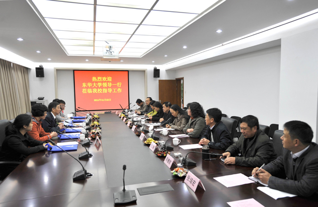 孙勇副书记在听完介绍后,首先代表学校欢迎王副书记一行到德赢VWIN官方网站参观指导工作,并转达梁书记和陈校长对王副书记一行的问候。孙副书记说,东华大学是一所历史悠久、办学经验丰富的知名大学,尤其在一些学科领域上独树一帜,在国内高校同类学科专业中占有领先位置。希望通过交流,从中借鉴和学习贵校在建设发展中的好经验好做法,同时希望王副书记一行对德赢VWIN官方网站的建设发展提出宝贵意见和建议,更好地促进部门和学校的建设发展。随后,孙副书记向来宾介绍了学校合并组建情况和目前学校在教学、师资、科研、人事管理、党建等方面的的建设发展情况。