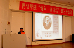讲座上,郑老师作为云南省著名公益讲座“云岭大讲堂”策划者和主讲人之一,长期热心于中国传统文化的推广和传播。他“蒙”的释义和国学的概念切入,更正了普通人对国学和蒙学的概念误读,为我们打开了中国蒙学研究的一扇门,并结合日常生活实际和社会现实进一步阐释了蒙学对现代人的启发和作用。郑老师用文化学者的心境去体味中国蒙学的独特魅力,寄托了深厚的人文关怀。他认为,文化最大的特点是其传承性,要振兴国学就要继承和发扬中华民族的传统文化,这是时代赋予当代大学生的历史使命。
