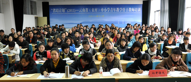 “省培计划(2011)”—云南省(农村)中小学青年教学骨干教师培训项目的初中语文、初中思品、初中化学、小学数学班于11月7日至11月18日在昆师路校区举办。本次培训计划培训人数187人,实际报到人数179人。11月8日上午举行了开班典礼,丁方副主任主持会议,熊绍宏主任对整个培训的目的意义、组织实施、培训要求作了说明,并介绍了德赢官网发展现状。