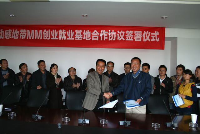 最后,李翔副校长与韩骥副总经理就“动感地带——MM”创业就业实训基地合作协议签字,与会人员共同见证了合作协议签字,并合影留念,这标志着德赢官网“动感地带——MM”创业就业实训基地建设正式启动。