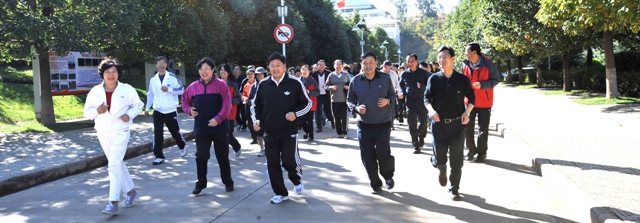 10时许,在聂耳广场还举行了“德赢VWIN官方网站教工文化协会(俱乐部)成立暨2011年教工运动会”教职工环校园跑项目起跑仪式。党委副书记李媛芬发令,在党委副书记孙勇、副校长李翔等校领导的领跑下,全校1500余名教职工开始了环校园跑。充分展示了全体教职员工热爱生活、热爱学校、热爱教育、热爱学生,追求健康,团结一心,把校园当家园建设,把学生当自己的孩子来培养。