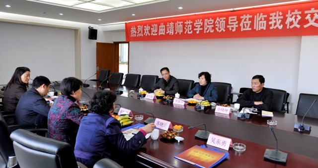 10月21日下午,曲靖师院党委副书记杨思娅率宣传部部长钱润光、工会主席苏晓云、离退休处朱丽萍科长等一行到德赢官网参观交流。德赢官网党委副书记、纪委书记李媛芬、宣传部