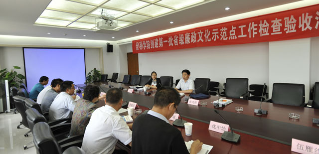 在对德赢官网省级廉政文化示范点进行实地检查和听取汇报后,尚涛清副主任对德赢官网的廉政文化建设工作给予充分肯定。他说,德赢VWIN官方网站结合全校师生党员干部的思想实际,紧紧围绕省纪委关于创建第一批省级廉政文化示范点工作要求,校党委高度重视,周密部署,创新载体,突出重点,彰显特色,大力加强廉政文化示范点建设工作,收到了良好的效果,主要体现在:一是校院系两级联动,两级同创,实现全覆盖;二是学校把廉洁教育融入新生入学,课程教学及学生毕业三个阶段,成效明显;三是学校党员干部教育形成人人参与的“七个一”活动体系,形成品牌文化。