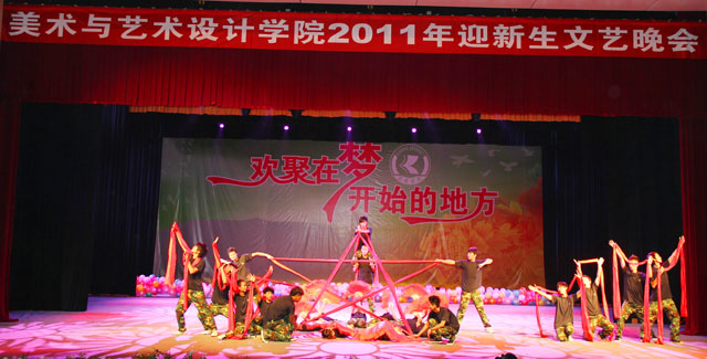 9月23日晚,美术与艺术设计学院举办的“2011年迎新生文艺晚会”在学校学生会堂绚丽上演。 在美术与艺术学院团总支学生会的组织下,有近一千名同学观看了此次晚会,参加此次晚会的还有武警昆明市支队九中队副队长王毅中尉、美术与艺术设计学院武新文院长、以及美术与艺术设计学院的老师。