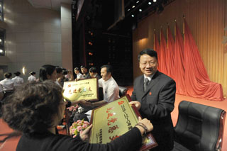 随后,党委副书记孙勇宣读了学校党委《关于表彰先进基层党组织、优秀共产党员、优秀党务工作者的决定》,对8个先进党总支、18个先进党支部、95名优秀共产党员和45名优秀党务工作者予以表彰。与会校领导为受表彰的先进集体和个人颁奖。