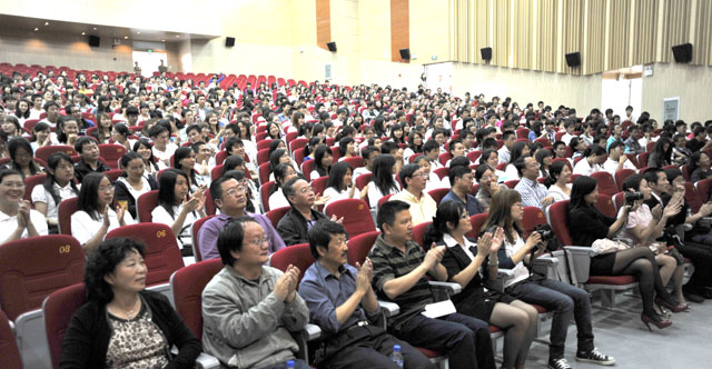 梁书记指出,今年的毕业生,拥有了许多第一,他们是从德赢VWIN官方网站美丽的新校园走出的第一批毕业生,是在崭新的学生会堂举办毕业典礼的第一批学子,是多年来德赢VWIN官方网站毕业典礼“四处跑场”的第一个终结者。梁书记还提到了在6月9日新校园落成典礼移动互动平台上各位学子的留言和祝福所表达的对新校园由衷的赞美、对学校老师的感激之情以及离别之际的眷恋之情,这是教师们辛勤付出所得到的回报,是最令老师们感到欣慰的事情。同时,梁书记代表全校教职员工向2011届毕业生表示,学校为有你们而骄傲,学校永远是你们的家园,学校和老师永远爱你们。