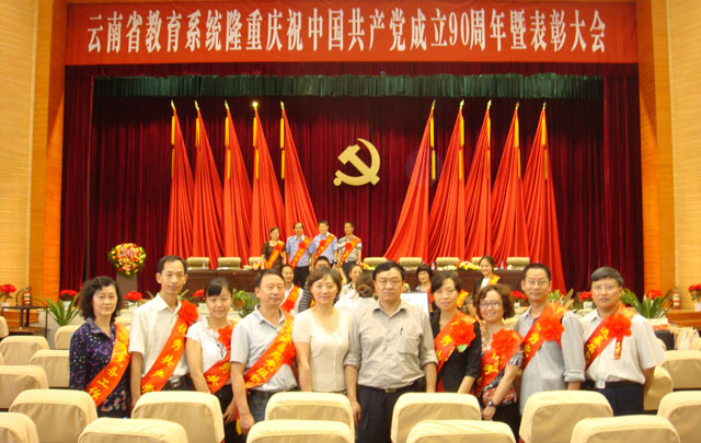 为庆祝中国共产党成立90周年,大力表彰全省教育战线的先进基层党组织、优秀共产党员及优秀党务工作者, 6月22日上午,“云南省教育系统庆祝中国共产党成立90周年暨表彰大会”在云南省教育厅礼堂隆重举行。 省委高校工委、省教育厅相关领导、州市教育局领导、高校领导及组织部门负责人、受表彰的代表参加了此次会议。德赢官网由党委副书记孙勇、组织部部长杨璐带队参加了此次表彰大会。