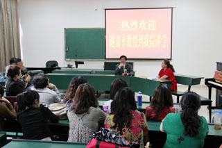 报告会由音乐学院院长靳丽芬教授主持。靳院长对谢教授的学术报告给予了高度评价,对谢教授表示衷心的感谢,并盛情邀请谢教授今后经常到音乐学院开展学术报告和进行业务指导。