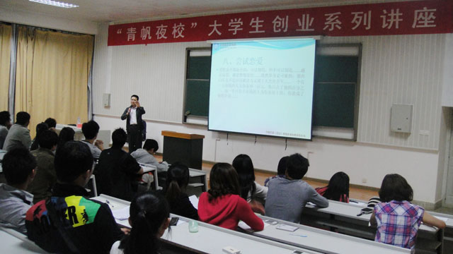 由校团委和招生就业处主办,学生社团联合会承办的德赢VWIN官方网站第三期“青帆夜校”大学生创业系列讲座第三讲于5月12日晚,在惟实楼6102教室开讲。新前景教育培训机构董事长、中财仕通(北京)财税咨询有限责任公司首席运营官付仕伟老师为德赢官网220余师生作了《我们创业》的讲座。