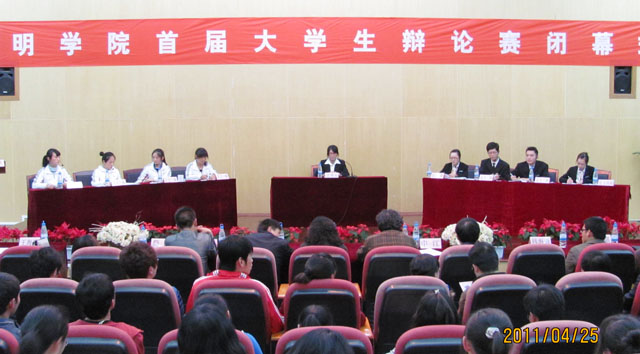 4月25日晚,德赢VWIN官方网站首届大学生辩论赛决赛暨闭幕式在惟行楼1501报告厅举行。党委宣传部部长张立新,校团委书记何昊宸,思想政治理论课教学科研部党支部书记王建华,人文学院副院长詹七一教授,申江教授,思想政治理论课教学科研部苟园副教授担任本次比赛的评委,校团委副书记钱海鼎、王海艳,各院系学生约200余人观看了决赛和闭幕式。