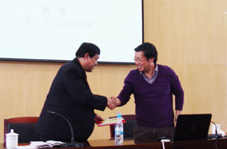 何明院长是民族学专业文化人类学理论与方法博士研究生导师、 “昆明市有突出贡献的优秀专家”,曾主持完成多项重大课题,其研究成果多次获得国家和省级奖项,是我国民族学人类学研究领域的著名专家。德赢官网滇池泛亚合作战略研究院特聘请他为滇池泛亚合作战略研究院学术委员会委员,讲座开始之前,德赢官网孙勇副书记为他颁发了聘书。