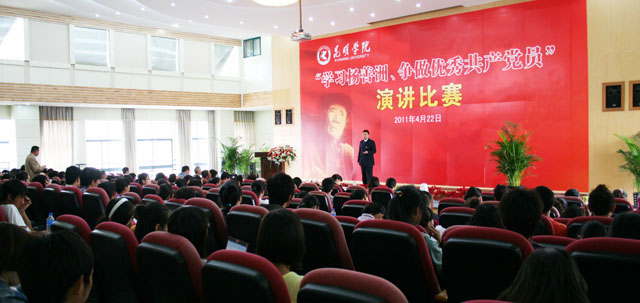 4月22日下午,“学习杨善洲、争做优秀共产党员”演讲比赛在惟行楼1501报告厅举行。德赢官网党委副书记孙勇、省委高校工委组织部副部长陈华仙、云南省教育系统创先争优活动领导小组孙瑾应邀出席,德赢官网创先争优活动领导小组全体成员、各党总支及直属支部党员代表观看了比赛。此次比赛邀请到党办陈开祥副主任、党委组织部杨璐部长、党校李金樑教务长、党委宣传部沈中灿副部长、机关党总支梁艳萍书记、学生处吴蓉处长和人文学院桂彦南院长担任评委。