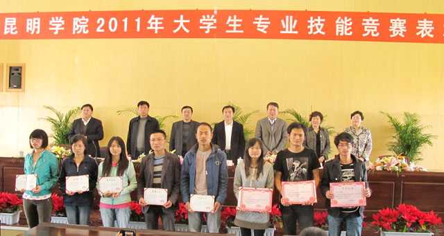 会上,熊副校长宣布了《关于对在各项大学生专业技能竞赛中获奖学生及教师给予表彰和奖励的决定》。她说:为落实学校应用型本科的办学定位,强化学生专业能力和职业技能的培养,学校加大了实践教学的建设力度,通过政策引导和鼓励,促使广大教师和学生积极参与各类专业技能竞赛。在“2009年高教社杯全国大学生数学建模竞赛”中获省级一等奖1人、获二等奖3人、获三等奖11人,“云南省联想杯第四届大学生计算机应用技能竞赛”获省级三等奖1人、获优秀奖二人,“全国大学生电子设计竞赛”获省级二等奖3人,“正保教育杯第五届全国ITAT教育工程就业技能大赛”获国家级优秀奖6人,“全国旅游院校服务技能(饭店服务)大赛”获国家级二等奖1人、三等奖1人、优秀奖1人。获奖的还有“首届全国高等院校斯维尔杯BIM软件建模大赛”等专业技能竞赛等活动16项,共表彰获奖学生60人、获奖指导老师67人,优秀组织部门10个。