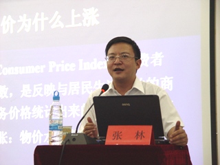 讲座上,张教授就“物价为什么上涨”、“‘用工荒’与‘就业难’”和“生活中的外资”等社会生活热点话题进行深度剖析。他以白菜价格为例分析通货膨胀的原因;从教育取向、劳动保障等方面解释了当下企业“用工荒”与“就业难”这一看似矛盾的社会现象;以粮食生产、水务等方面为代表,说明外资(FDI)对中国经济安全的影响。他强调,当代大学生应有强烈的历史使命感和社会责任感,自觉维护国家利益。