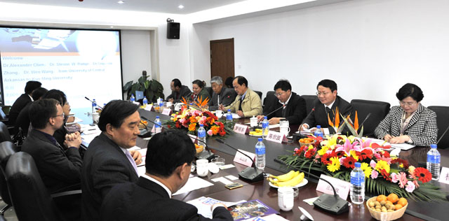 在听取了陈廼骥副校长的总体介绍以及自然科学与数学学院院长史蒂芬 罗基博士、孔子学院院长庄国欧博士、康复理疗系助理教授王文博士的补充介绍后,参加座谈的院领导及相关职能部门及到场各教学单位相关负责人与阿肯色州立大学代表团就各种合作交流项目进行了热烈的座谈,并在一些项目合作上达成了一致。