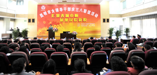 | 在“三•八”国际劳动妇女节101周年即将到来之际,为全面贯彻市委九届七次全体(扩大)会议精神,隆重庆祝“三•八”国际劳动妇女节,充分发挥昆明市女领导干部联谊会联系妇女、服务妇女的作用,为女领导干部搭建相互交流的平台,3月4日下午,2011年昆明市女领导干部“三八妇女节”联谊会在德赢VWIN官方网站隆重举行。