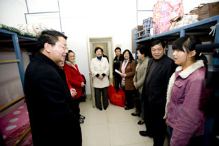 1月26日下午,我院陈世波院长率孙勇副书记、李媛芬副书记、熊晶副院长等院领导深入澄明苑学生宿舍,专门看望慰问了我院今年春节不能回家过年的留校学生代表,向同学们转达了学院党委、行政及全院干部、教师对留校生的亲切问候与关切,并亲手给同学们每人一份过年礼包。
