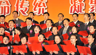 从初赛中脱颖而出的八支代表队、全体院领导与机关代表队进行了最后的合唱汇报表演。